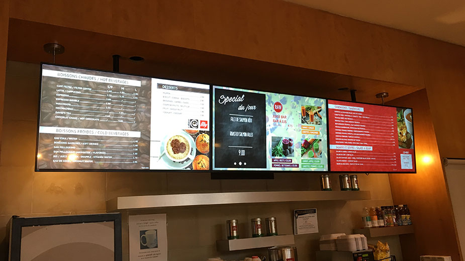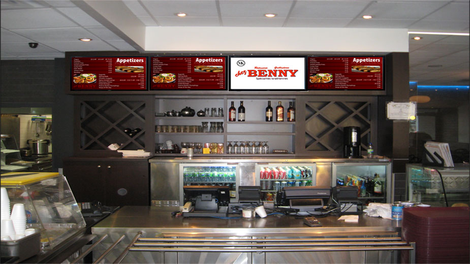Our digital menu boards fit even in the most demanding environments. Whether a quick service restaurant or a fancy sit down venue, the decor of the screen and the content will be adapted accordingly.