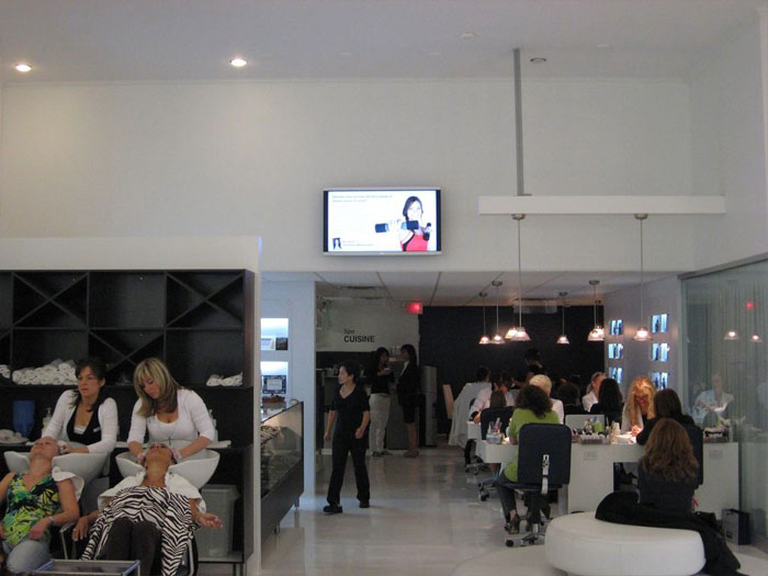 Nos grands écrans numériques sont placés dans des endroits stratégiques et achalandés à Montréal, tels que restaurants, pharmacies, salons de beauté, salles d'attente, et le nombre ne cesse d'augmenter.